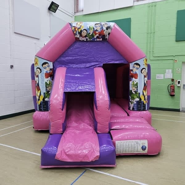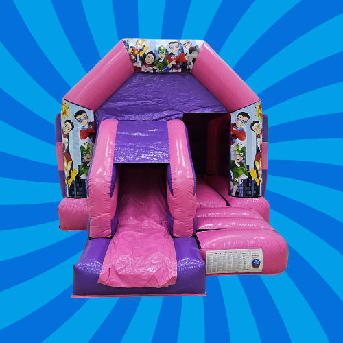 Bring high-energy fun and celebratory flair to your next event with the Super Hero Pink Combi from Bouncing Mad. This vibrant themed inflatable gives kids the best of both worlds — plenty of bouncing space plus a built-in slide — while you get peace of mind thanks to our fully maintained, insured equipment.