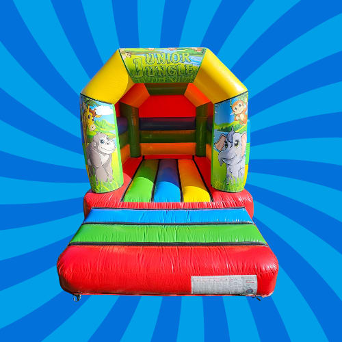 Jungle Multi-Coloured Toddler Castle Let your little explorers swing into action with our Jungle Multi-Coloured Toddler Castle! This vibrant inflatable is designed specifically for toddlers and young children, featuring charming jungle-themed characters and bright, bold colors that will spark their imagination. Whether it’s a birthday party, playdate, or community event, this bouncy castle guarantees hours of safe and exciting entertainment.