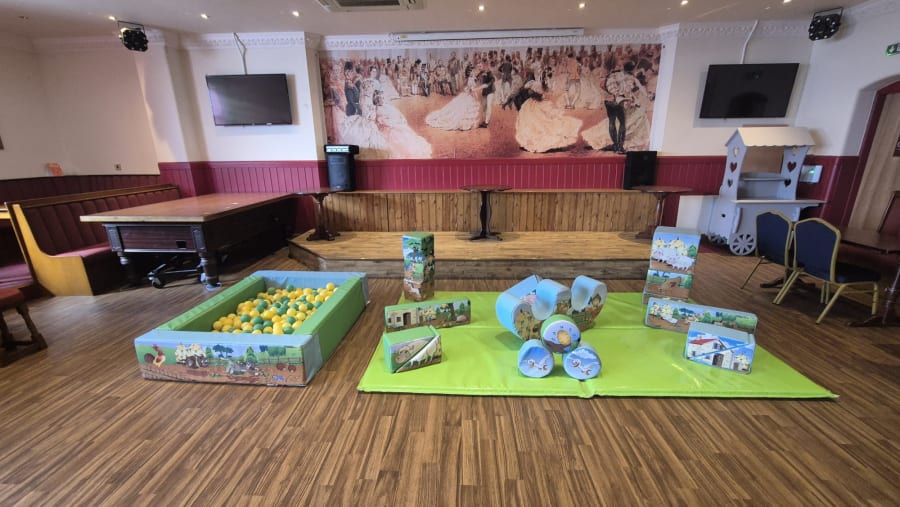 Animal-farm soft play: Soft, foam-filled animal shapes and tunnels to climb, crawl, and explore — perfect for little ones.